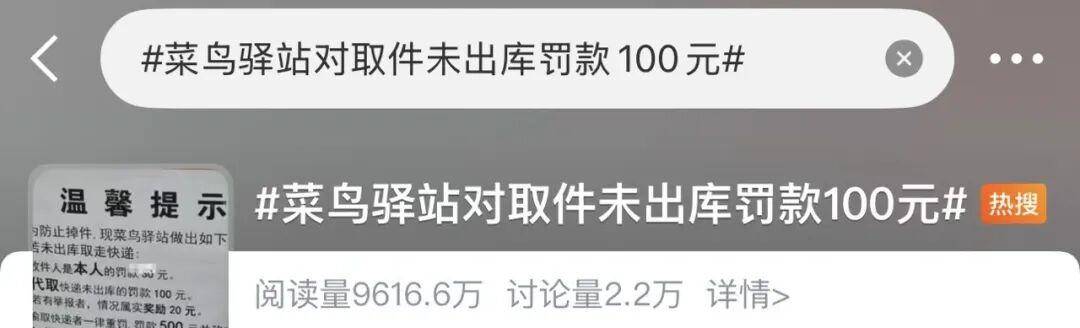 菜鸟驿站官方回应称,菜鸟平台未授权罚款,已核实是站点个人行为,平台发现以后已敦促站点拆除,并对站点进行了警告处理。