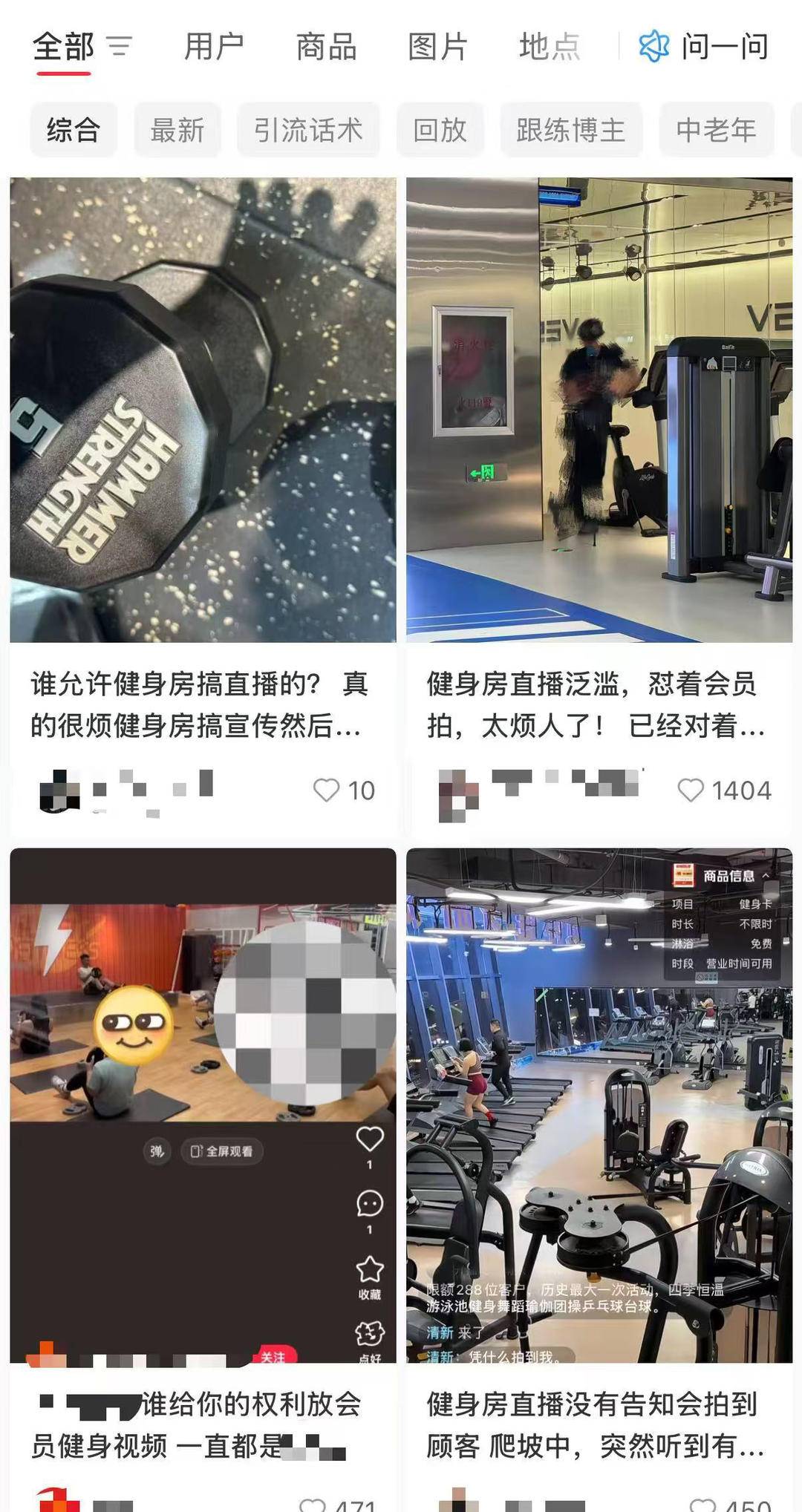 健身场景竟成“流量素材”?近日,有网友发帖控诉某连锁健身房部分门店未经同意,便通过官方账号发布会员健身视频、在店内开展直播,认为此举侵犯个人隐私。该帖引发网友共鸣,不少人分享类似经历,吐槽健身房等公共场合的无差别拍摄乱象。