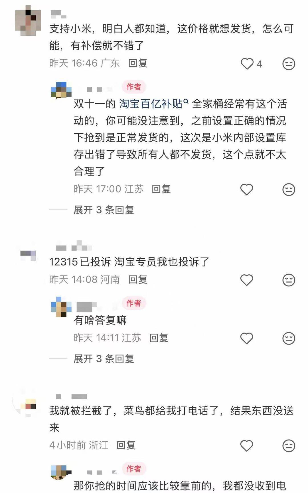 “在官方店铺秒杀到的冰箱为啥不发货?这也太玩不起了吧!”近日,扬子晚报/紫牛新闻记者注意到,多位消费者在社交媒体平台发帖吐槽,称自己在某电商平台小米官方旗舰店的双十一秒杀活动中,以11.11元抢购到小米冰箱,次日却被告知无法发货,相关处理引发消费者不满。