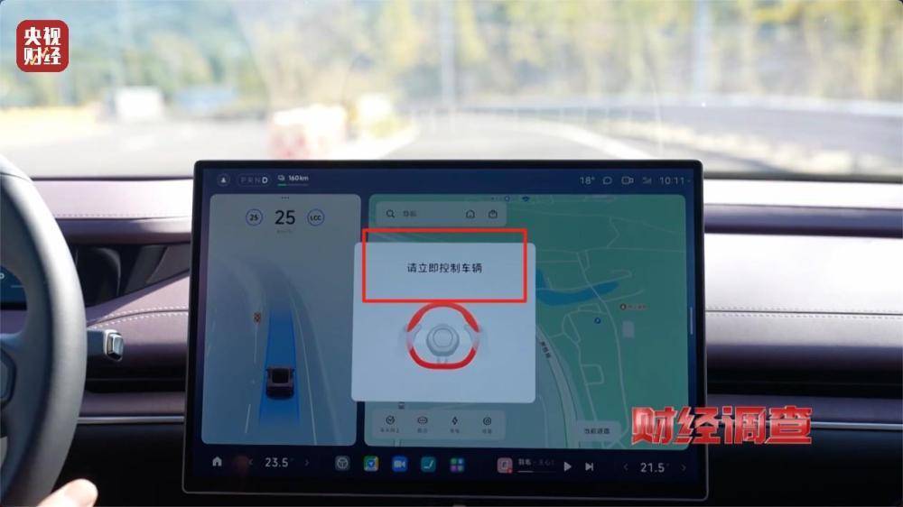 记者来到公安部交通管理科学研究所,跟随检测人员,在封闭路段进行双手离开方向盘的测试。20秒后,车辆屏幕出现了“请手握方向盘”的字样,发出接管提醒,在驾驶人没有接管它的情况下,车辆随后发出报警声音,屏幕字样变成“请立即手握方向盘”,这时,驾驶人还不处理,汽车会直接提示“请立即控制车辆”,并退出辅助驾驶功能。