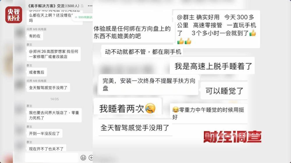 记者以车主的身份成功加入多个联络群:离手方案群、《离手解决方案》交流群,记者发现群成员多到500人,少则100多人,群成员不仅频繁地分享效果视频,聊天也十分活跃。