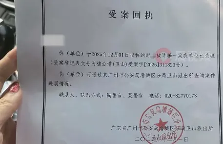 时女士展示的受案回执显示,广州市公安局增城区分局卫山派出所已受理该案。
