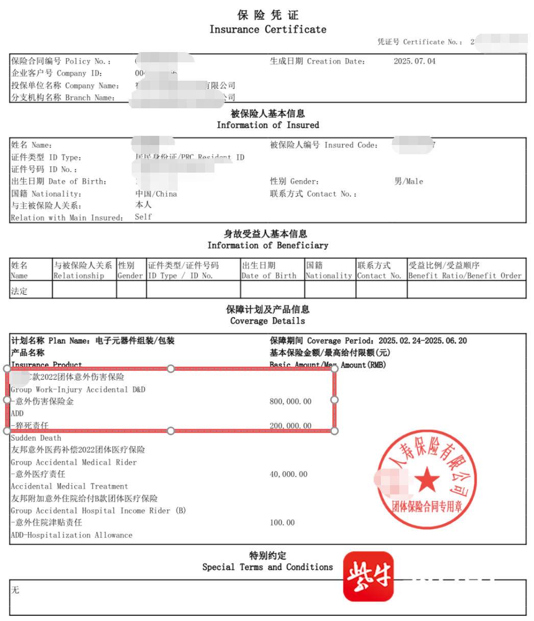 小张称,签完协议后,他便回老家休养,半年后身体已经恢复得差不多了。公司联系了小张让他去做劳动能力鉴定,费用由公司出。在鉴定机构,小张意外看到了他那份保单的名称。通过多方尝试,他终于在保险公司的系统里查到了他那份保单——这并非老板口中所谓的“雇主责任险”,而是一份以小张为被保险人的团体意外伤害险,保额为80万元。“受益人是我,公司从始至终都在隐瞒,他们想偷偷领走这笔钱。”小张愤怒地表示。