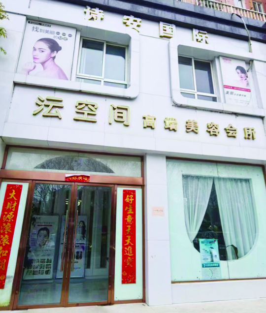 近日,记者来到位于宿迁泗阳的“诗安国际沄空间美容会所”。现场可以看到,该经营场所悬挂着两块招牌。经营面积较大的“诗安国际”招牌反而较小,而仅有一间办公室和一间操作室的“沄空间高端美容会所”招牌则更为醒目。