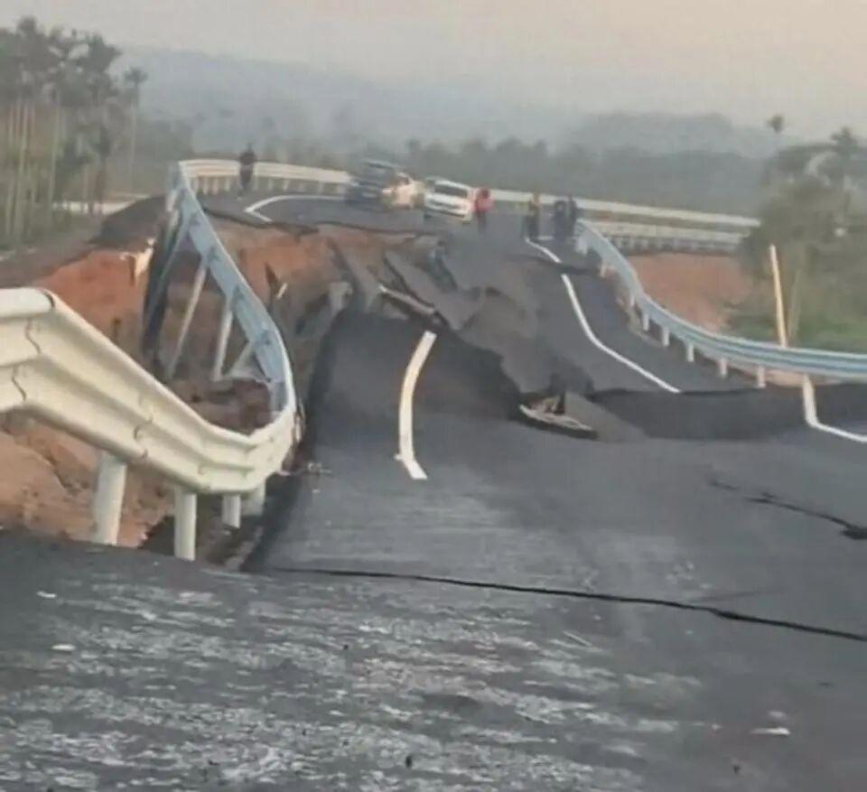 据海南省交通运输厅工作人员介绍,事发当日下午,已第一时间派人赴现场调查,同步委托专业检测机构对工程材料、实体质量进行全面核查,组织咨询单位对项目设计方案、建设程序进行合规性审查。经初步核查,该路段原址为废弃河道,地下淤积大量软土与淤泥,地质条件复杂。施工单位虽按设计要求开展了基础换填作业,但没有充分精准掌握现场地质实际,软基处理不到位,上部路基填筑后荷载超出地基承载能力,最终引发路面滑塌。