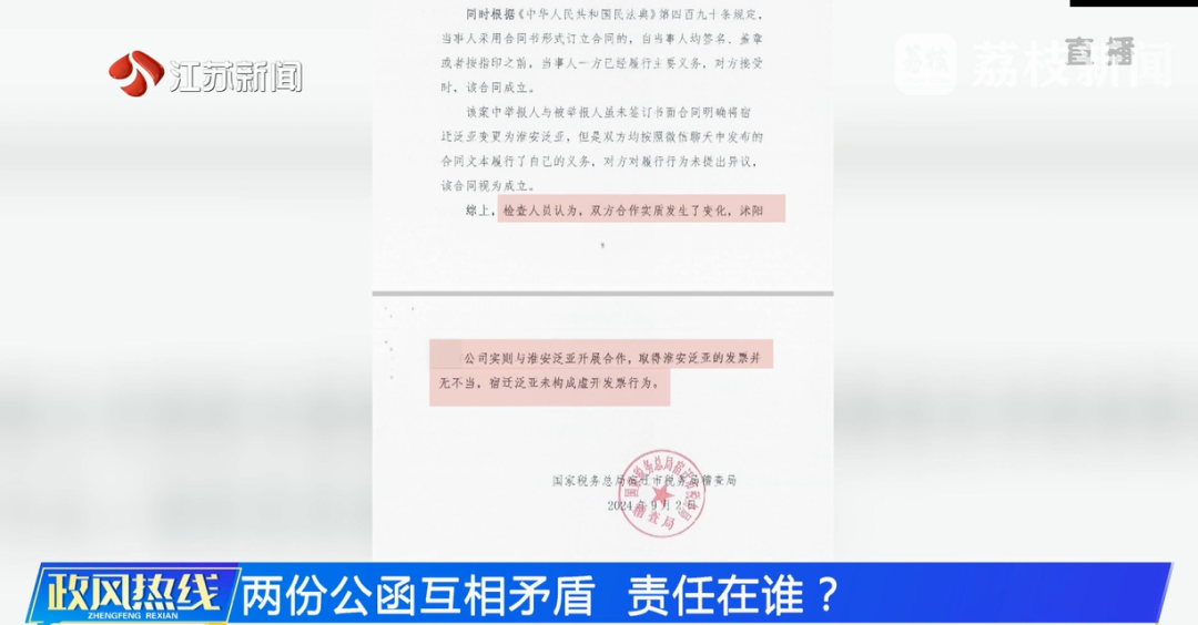 宿迁市税务局稽查局局长王亚娜回应,依据税款属地原则,相关 38 万税款应在宿迁缴纳,税务部门将协调淮安市税务局退回已缴税款,但淮安直接退税至宿迁操作不便。关于先退税还是先缴纳税款,可进一步协调沟通。
